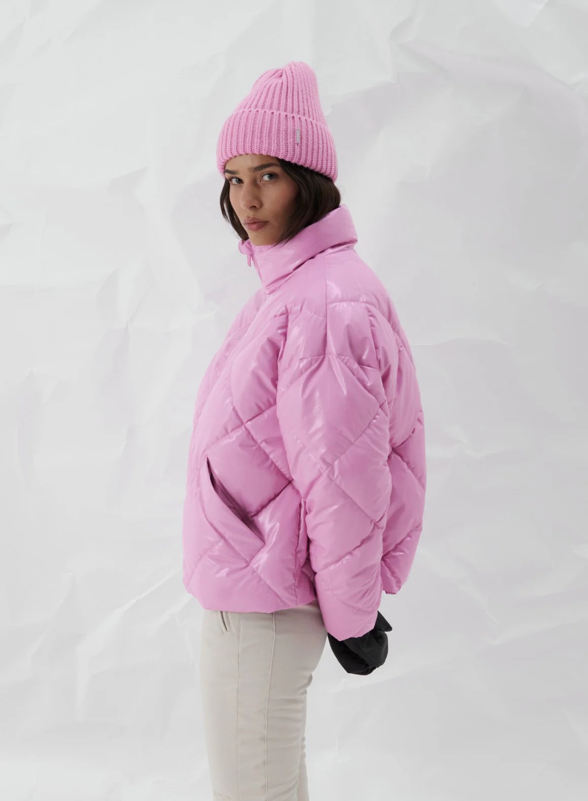 Stay warm in style with the Peony Pink Diamond Quilt Puffer Jacket. With its trendy diamond-quilted design, this puffer delivers both fashion and functionality. The vibrant pink hue adds a fun twist, making it the perfect statement piece for chilly weather.