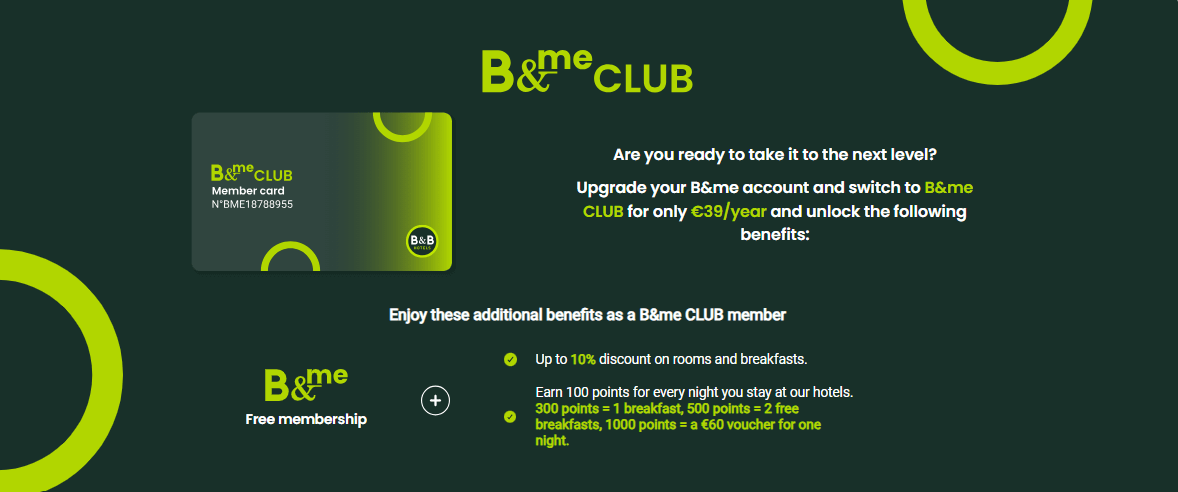 B&B HOTELS’ B&me loyalty program gives travelers a range of perks designed to enhance every stay. Upon registering, members enjoy a free breakfast voucher, faster booking and check-in, exclusive digital services, access to welcome rates from €50 in new hotels, and late check-out options. Frequent guests can upgrade to B&me CLUB for an annual fee to unlock additional benefits like up to 10 % discounts, points for free breakfasts or nights, and even more travel rewards.