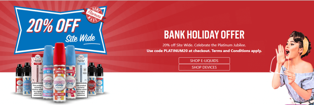 20% Off on Vape Dinner Lady Products – Bank Holiday Sale