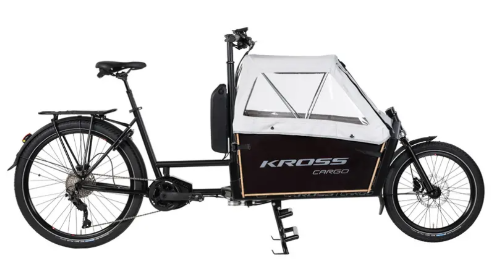 The Kross Cargo Family black e-bike is designed for convenience and function. It features specially designed seats with safety belts for children, electric assistance so you can easily climb any hill, even when the bike is loaded, and hydraulic disc brakes for powerful brake performance. Experience environmental benefits and improved fitness by using this efficient alternative to your car.