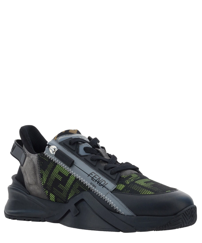Sneakers by Fendi, round toe, panel design, front closure with laces, logoed tongue on the heel, side zip closure, structured sole. These Fendi Sneakers offer a unique and contemporary style. They feature a classic round-toe design with a striking panel arrangement. The sole is structured to provide both comfort and support for your feet.