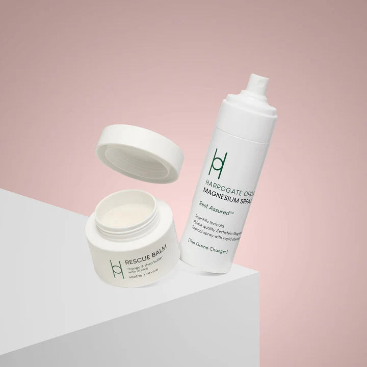 Harrogate Organics’ Magnesium Spray & Rescue Balm duo is your go-to for natural muscle relief and better sleep. The Magnesium Spray relaxes muscles and promotes restful sleep, while the Rescue Balm, enriched with arnica and shea butter, soothes sore muscles and nourishes skin. Together, they offer an easy, effective way to unwind and recover naturally.