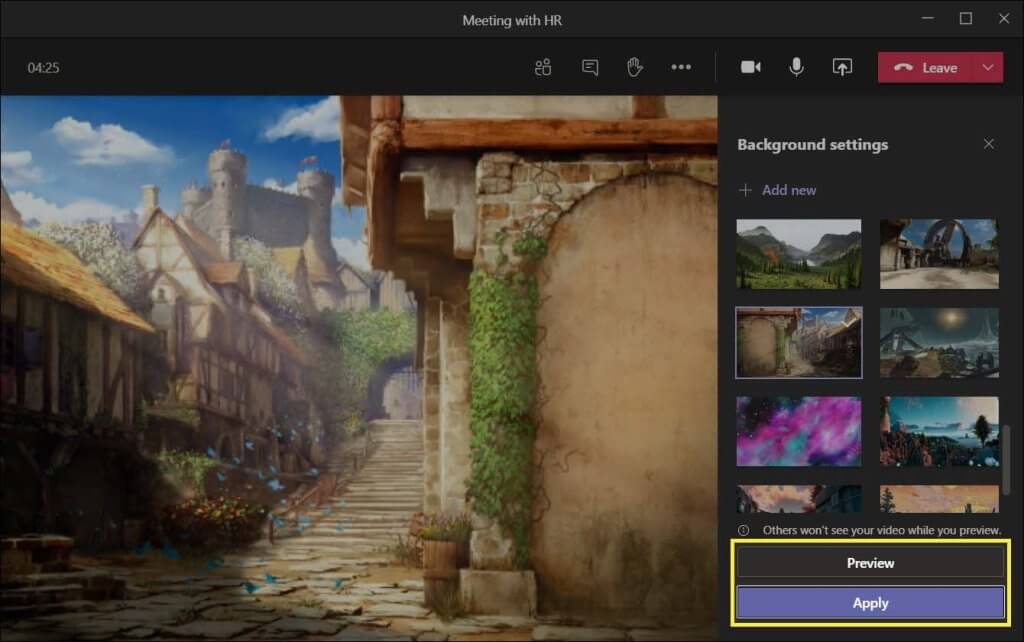 - Go to the background effects from settings and choose the Add New option