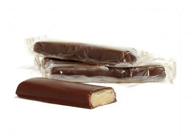 Mayer Junior Marzipanbrot is a small, freshly produced treat (35 g) featuring around 50% almond content, blended with sugar, water, invert-sugar syrup, and a touch of alcohol. It’s coated in a crisp layer of at least 68% dark chocolate, giving a pleasantly soft interior and a satisfyingly crunchy exterior. With fewer sugars and a high almond aroma, it’s a premium marzipan option that stands out.