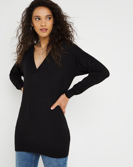 Give your style a new name with Black Slouchy V Neck Tunic. Can be worn casually and its soft stylish features offer multiple options to go with. Get your favourite Denim and pair the Tunic with ankle boots and flaunt with your daytime attire. Long Black Tunic with full sleeves looks amazing with a coloured high neck inside in winter. Book your item to get a straight 46% discount.