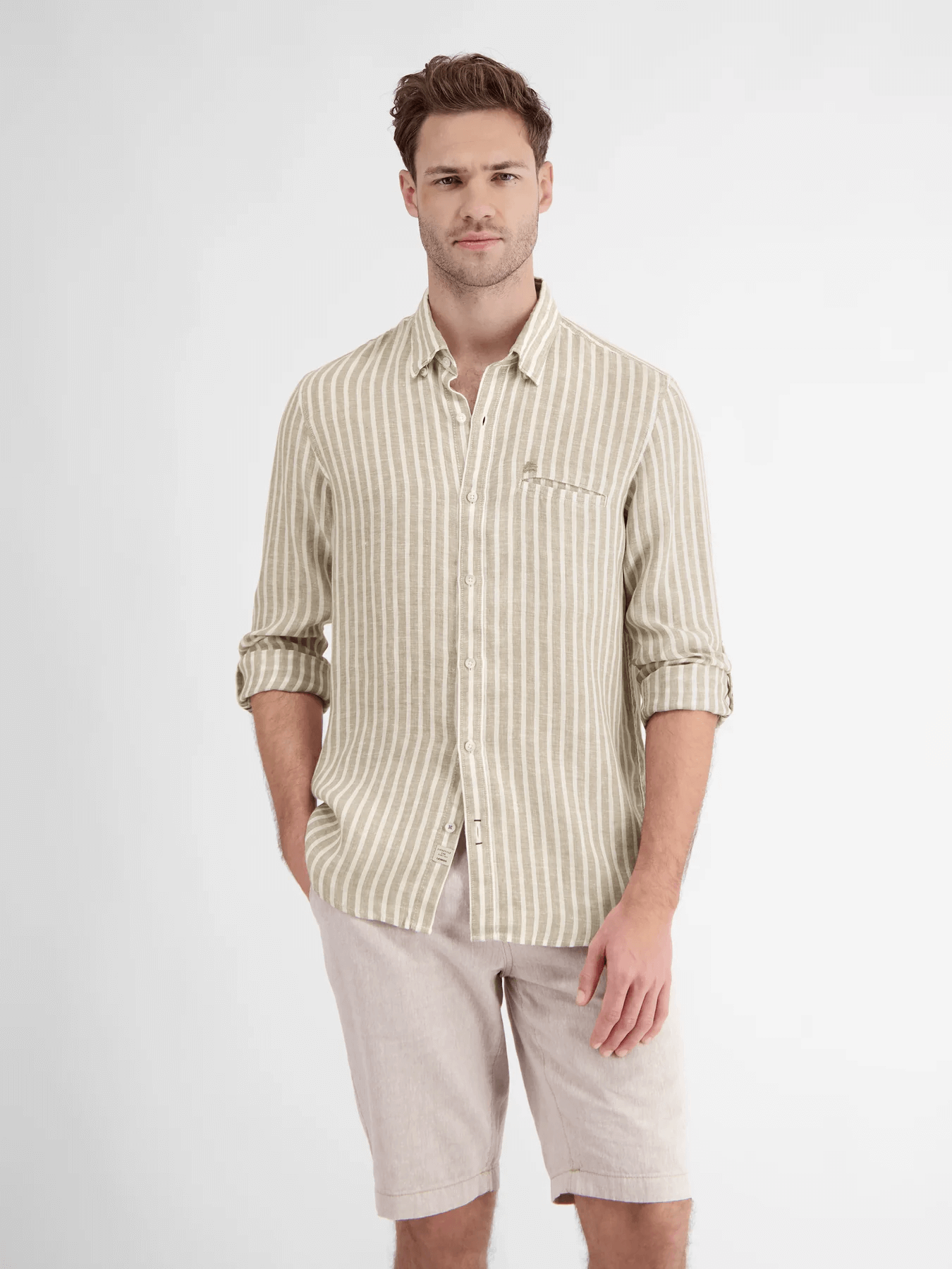 Elevate your summer wardrobe with the Striped Long Sleeve Shirt in Linen Blend. The trendy striped pattern, the casual linen look, and the concealed button-down collar make for a stylish yet laid-back statement piece. With a regular fit and chest pocket detailing, this LERROS shirt is perfect for any occasion.