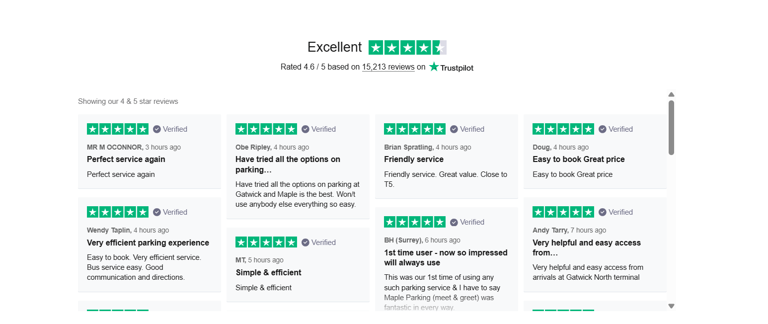 With MapleParking.co.uk, your journey begins and ends with peace of mind. From flexible Meet & Greet to cost-effective Park & Ride options, plus a reputation backed by over 15,000 Trustpilot reviews, you can count on Maple Parking for convenience, security, and value every time you travel. Don’t let airport parking add stress to your trip. Choose the smarter way to park.