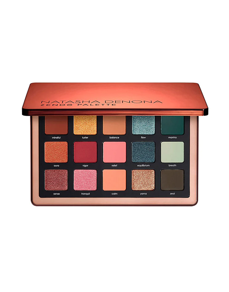 Introducing the full-size extension to the bestselling MINI ZENDO PALETTE, the ZENDO EYESHADOW PALETTE offers 15 all NEW shades in 4 of Natasha’s groundbreaking formulas: metallic, duo chrome, cream powder, & creamy matte. Unique but wearable, it strikes a perfect balance between Natasha’s more adventurous palettes & the classic neutral color stories of the BIBA or GLAM palettes.