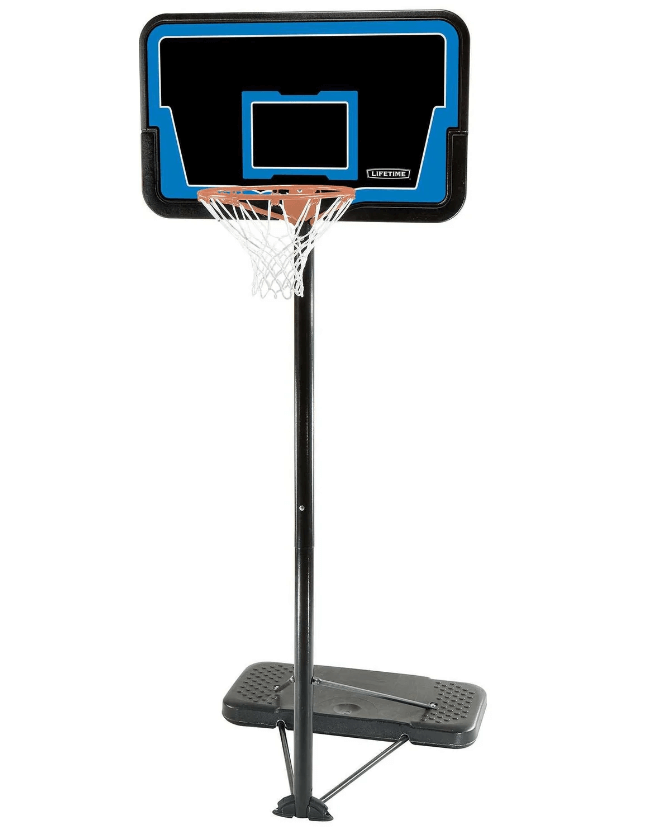 Transform your driveway into a home court with the Lifetime Impact 44in an adjustable portable basketball system. Designed for players of any height, it features an 18” classic rim and all-weather net to help you perfect your shooting skills, passing, and footwork. The sturdy Streamline™ base can hold up to 73 liters of sand or water for added stability, while the adjustable height range from 229-305cm (7.5-10ft) allows for jump shots, free throws, and slam dunks.