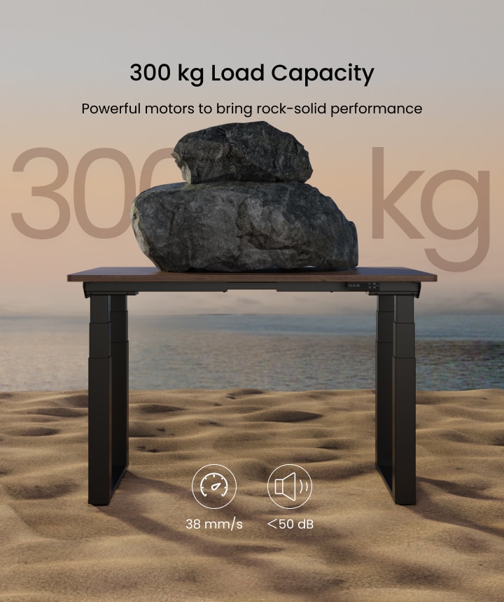 This desk features a dual-motor lifting system that can handle up to 160kg—more than enough for multiple monitors, heavy PC towers, and even your morning coffee. It includes a premium 3-in-1 integrated keypad with child lock, USB charging, and four programmable height presets.