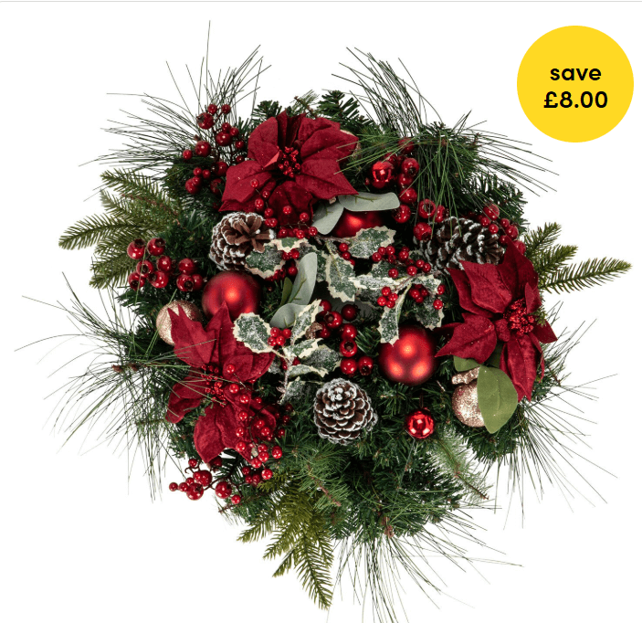 Embrace the festive spirit with Wilko’s Traditional Bauble Poinsettia Wreath, a 65cm decorative piece that brings classic holiday charm to your home. Featuring lifelike faux fur branches, vibrant poinsettia flowers, pinecones, holly leaves, and shimmering baubles, this wreath is dusted with iridescent glitter for an added touch of elegance. Ideal for adorning doors, windows, or walls, it offers a warm welcome to guests and enhances your Christmas décor. Originally priced at £39.99, it’s now available for £31.99, allowing you to save £8.00.